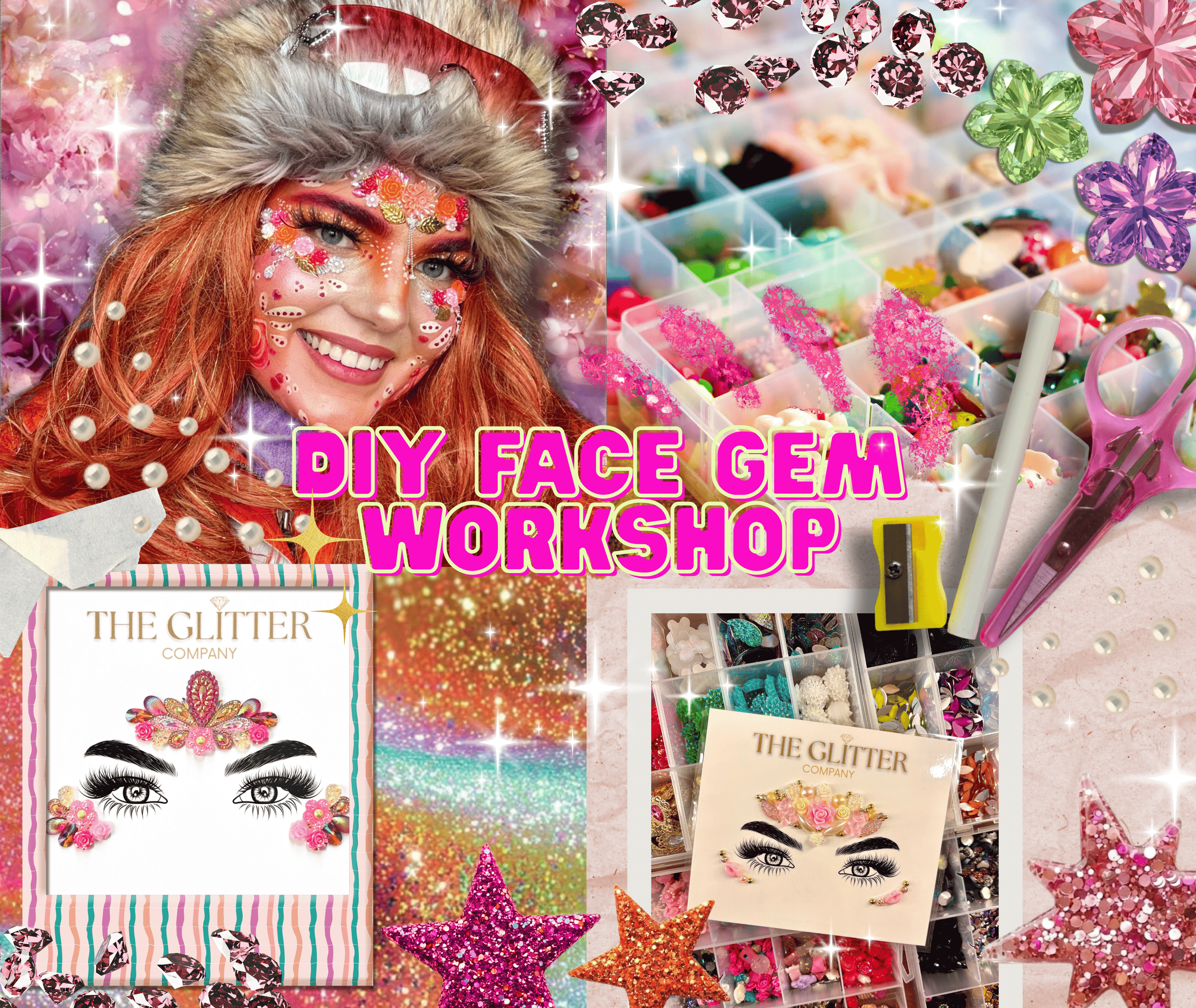 Onder begeleiding van Elin, eigenaresse van The Glitter Company, leer je stap voor stap hoe je de mooiste Face Gems maakt 💖