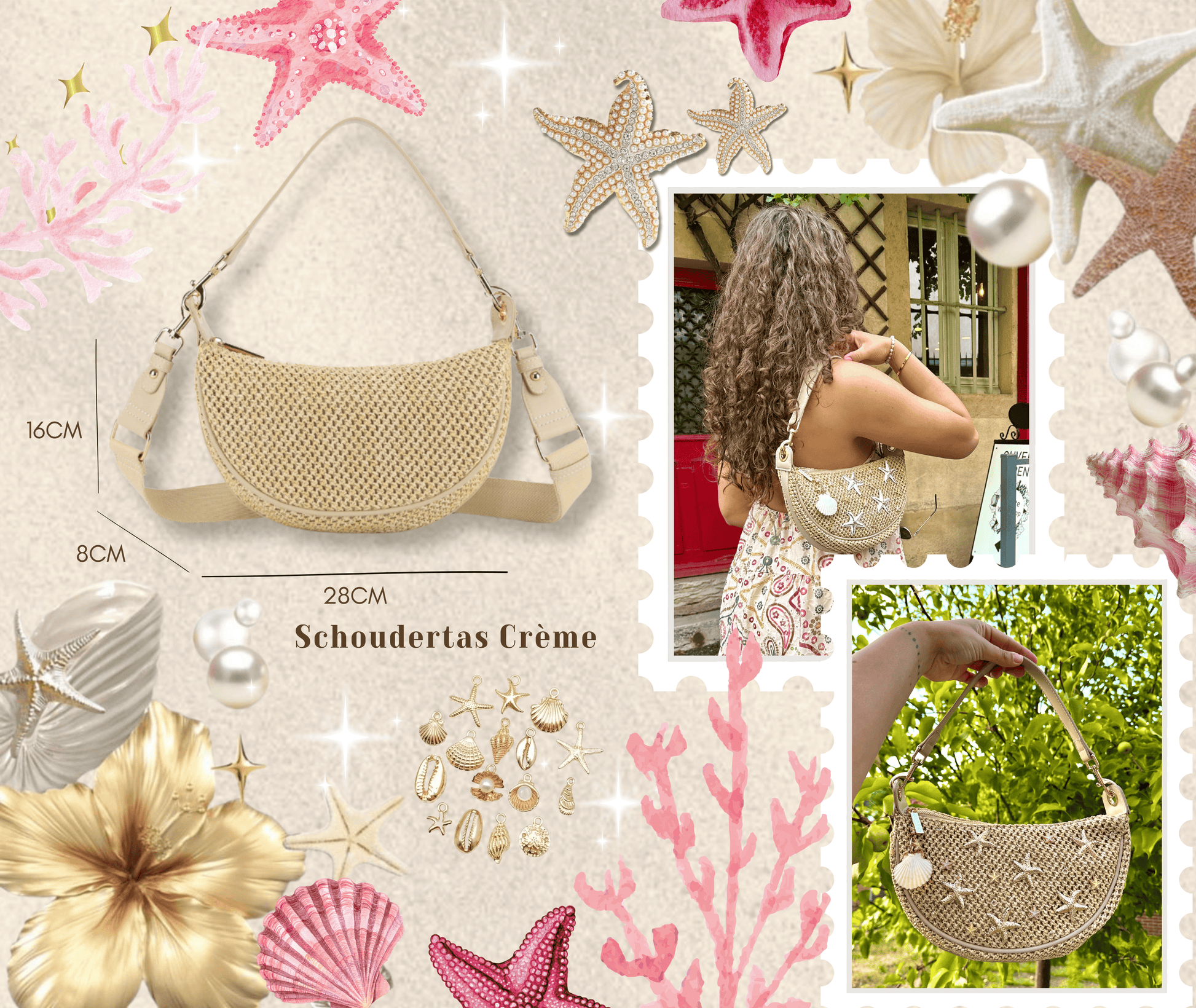 🐚 Oneindig veel bedeltjes, parels, schelpjes, broches en andere materialen om je tas helemaal naar jouw smaak te maken