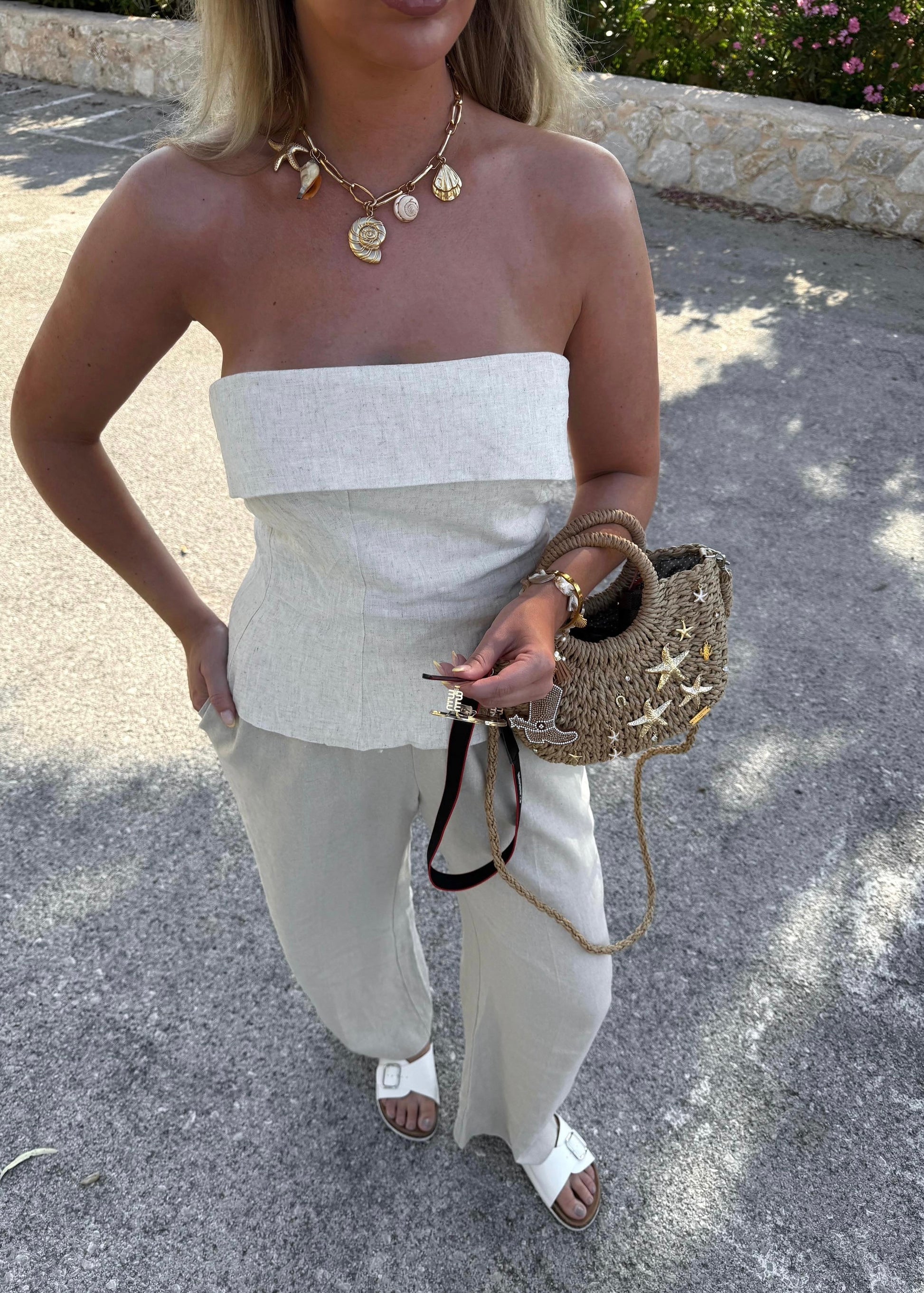 - De bedels worden met de hand op de tas bevestigd, waardoor de positie licht kan variëren.