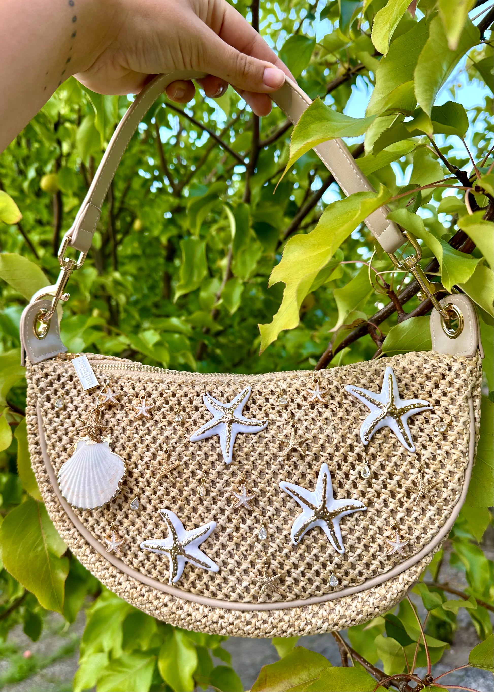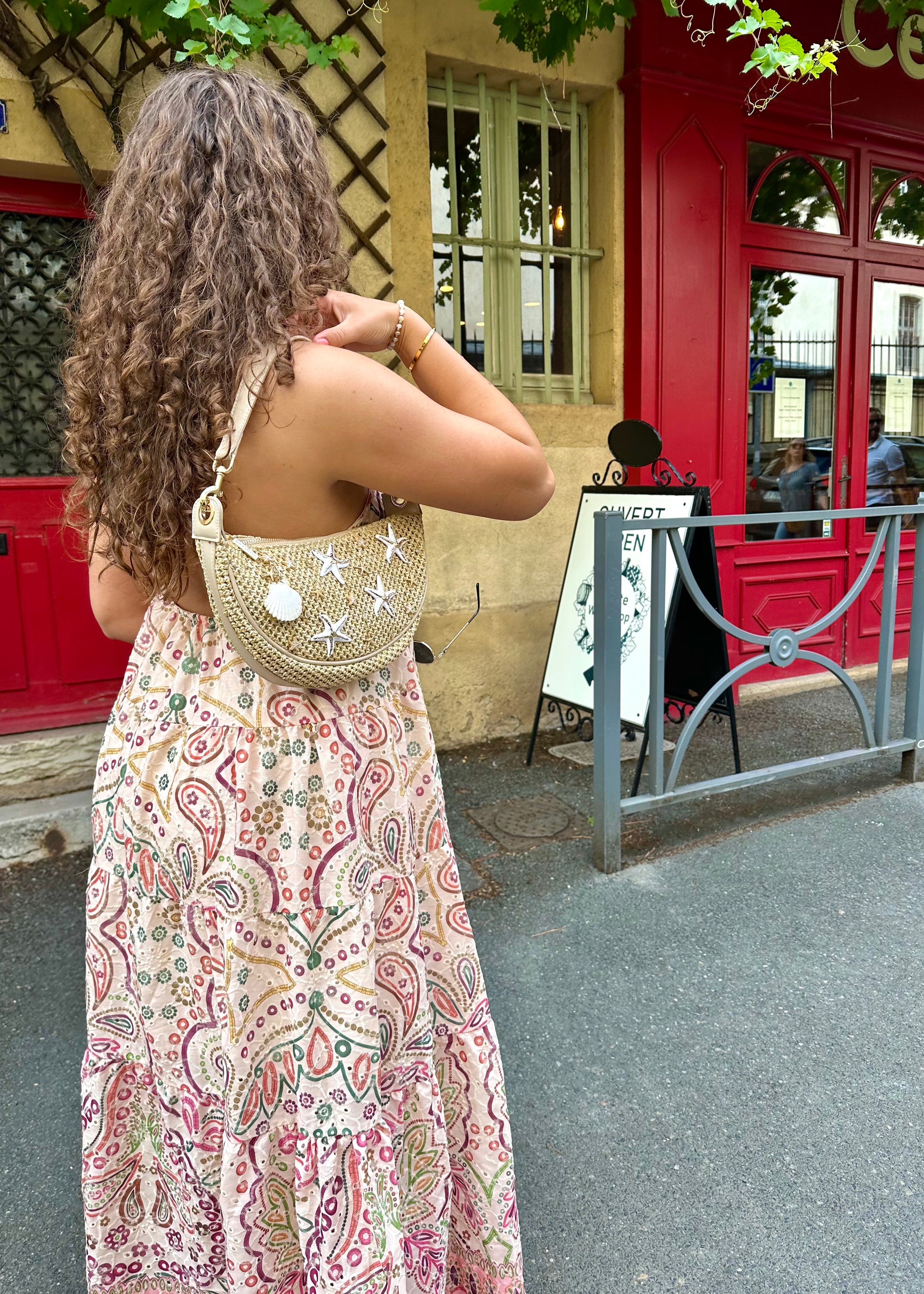 - Twee schouderbanden: een korte om de tas als schoudertas te dragen en een lange, verstelbare band om de tas als crossbody te dragen.